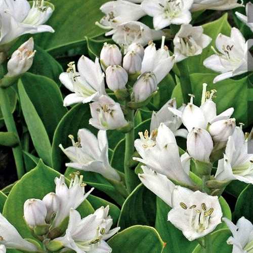 Цветение Хосты происходит в средние сроки, начиная с июля и продолжаясь до августа. Соцветия имеют вид метелки, а цветы колокольчатой формы размером 3-6 см. Их окраска варьируется от бледно-сиреневых до практически белых лепестков, привнося светлые ноты в общую палитру цветника. Несмотря на это, аромат цветов отсутствует.